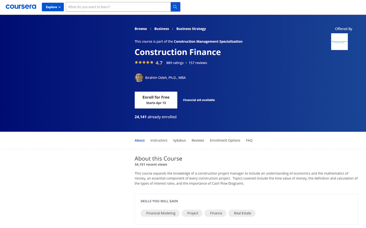 If you’re just starting out and want to learn the basics, the internet will provide many learning opportunities. For example, there’s a full course on construction finance offered by Coursera.