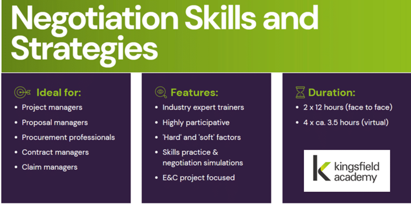 This training focuses on applying key negotiation principles to the specific circumstances pertaining to the execution of engineering and construction projects.