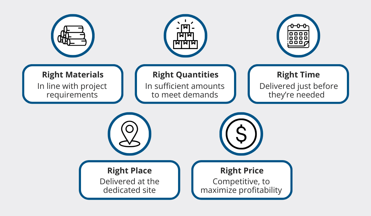The Five Rights (Rs) framework illustrates these material management objectives perfectly.