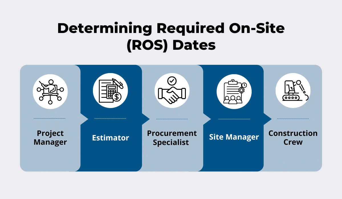 Determining required on-site (ROS) dates means aligning material delivery with project phases and construction schedules to maximize productivity.
