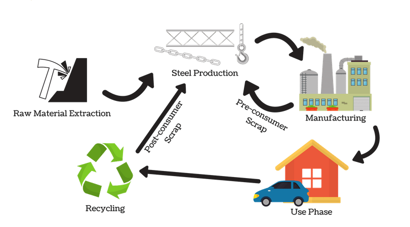 In fact, according to architecture professor Kiel Moe, steel is the most-recycled byproduct of construction projects, and around 98% of steel scrap is reused.