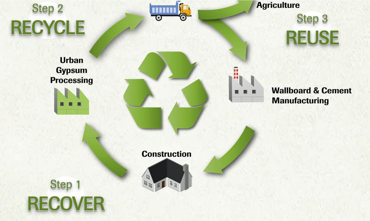 As the above visual shows, recycled gypsum also has industrial applications in addition to agricultural uses.