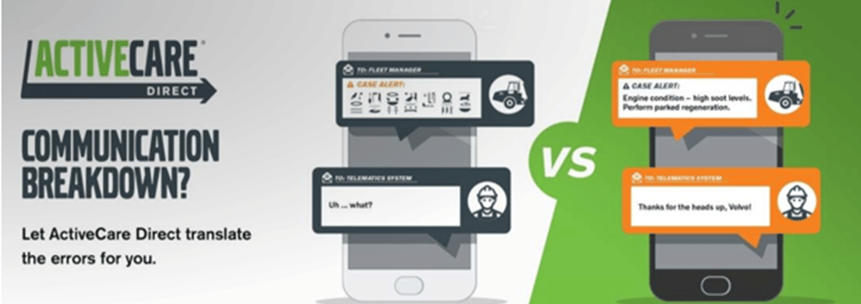 One such example is Volvo’s ActiveCare Direct, which translates machine fault codes into clear messages.