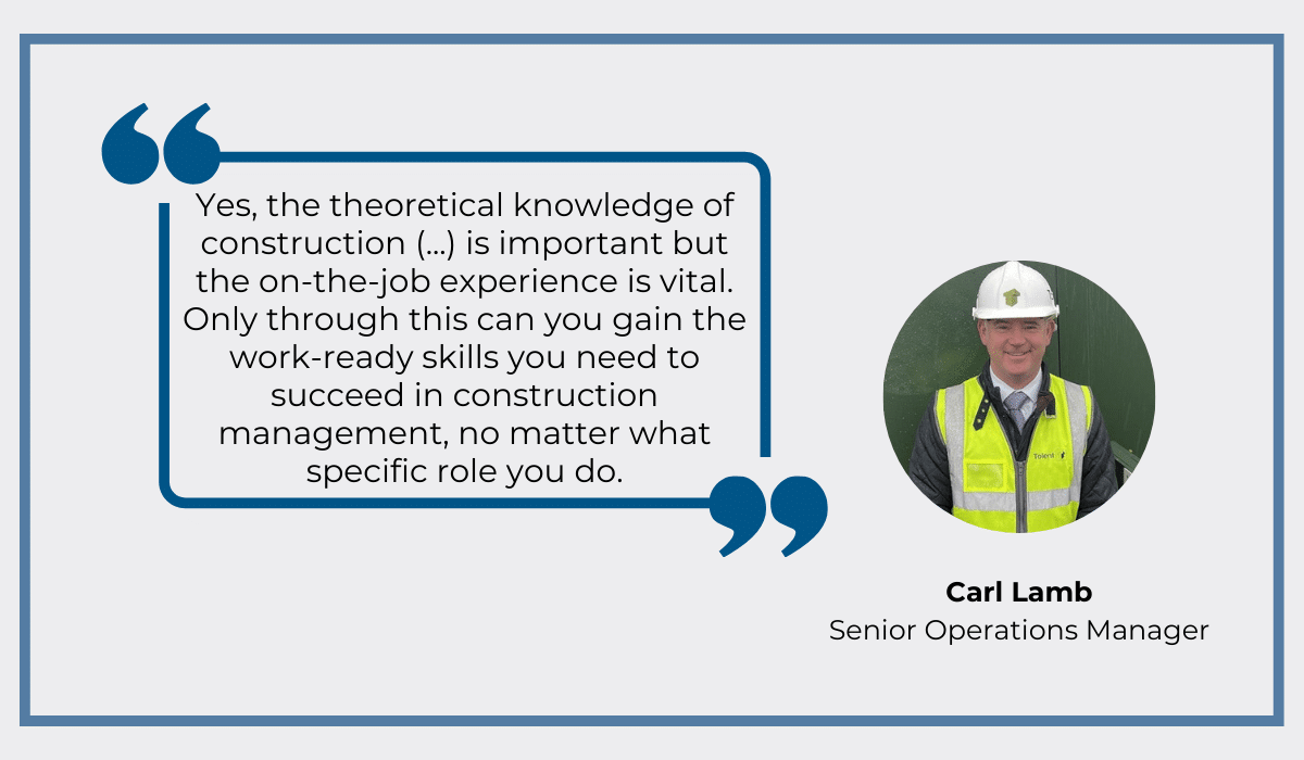 According to insights from Carl Lamb, a senior operations manager for a leading UK contractor, the knowledge you get from working on a job site is what really counts.