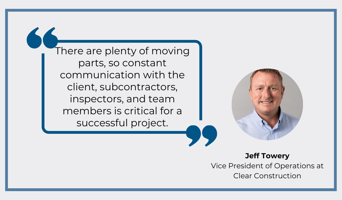 Jeff Towery, Clear Construction’s Vice President of Operations, highlights the ability to effectively communicate with colleagues as the core of successful project completion.