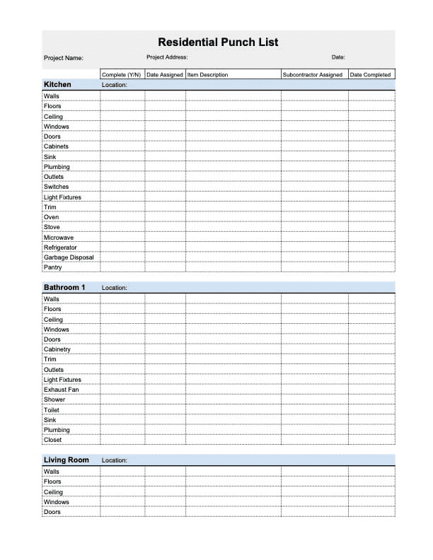 - Complete a punch list