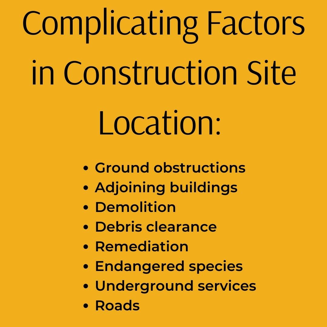 A construction site that is difficult to access with construction equipment increases the cost of the project because more resources must be allocated to securing, maintaining, and safeguarding the site.