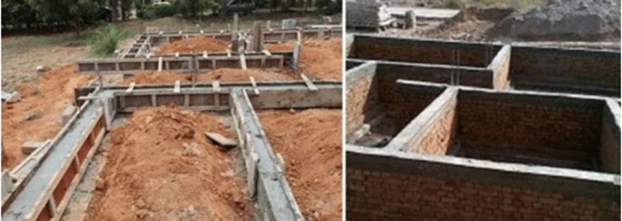 Plinth beams also protect future walls from moisture, hold the backfilled material, and serve as a bearing surface for masonry work.