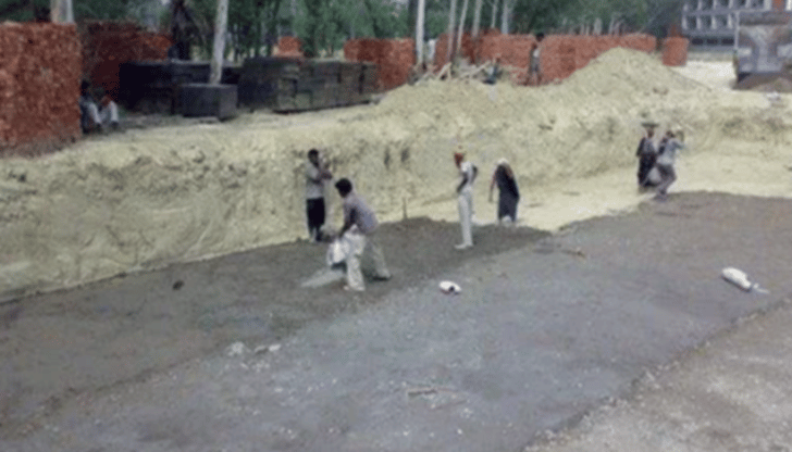 Next, a layer of plain cement concrete (PCC) is poured over the compacted surface to prevent steel reinforcements (rebars) from coming into contact with soil and water and ensuring they can be laid out evenly.