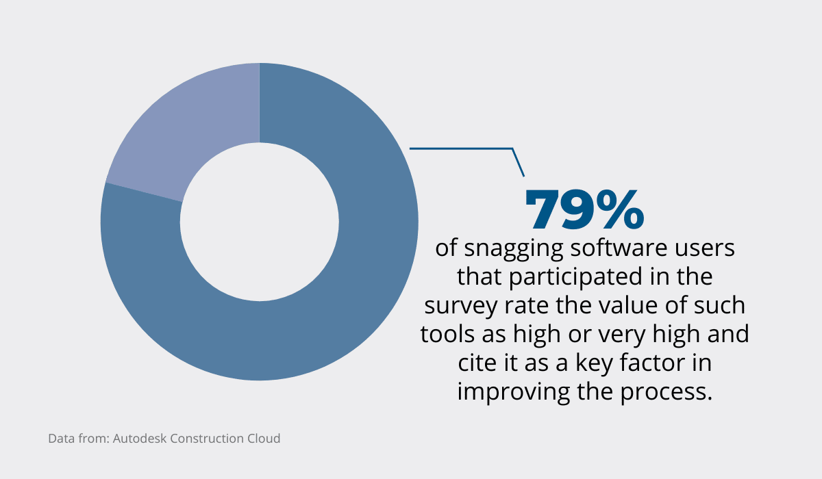 According to a survey conducted by Autodesk Construction Cloud, the large majority of snagging software users find that having such a tool is crucial for the success of the snagging process.