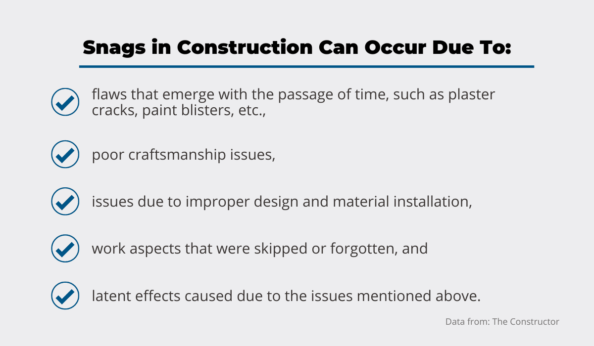 Let’s take a look at some of the most common reasons why snags tend to occur: