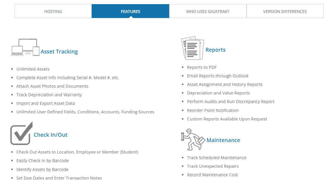 It enables businesses to track tools and equipment, schedule maintenance, scan barcodes, QR codes, or RFID tags, manage teams, and create maintenance schedules, among others.