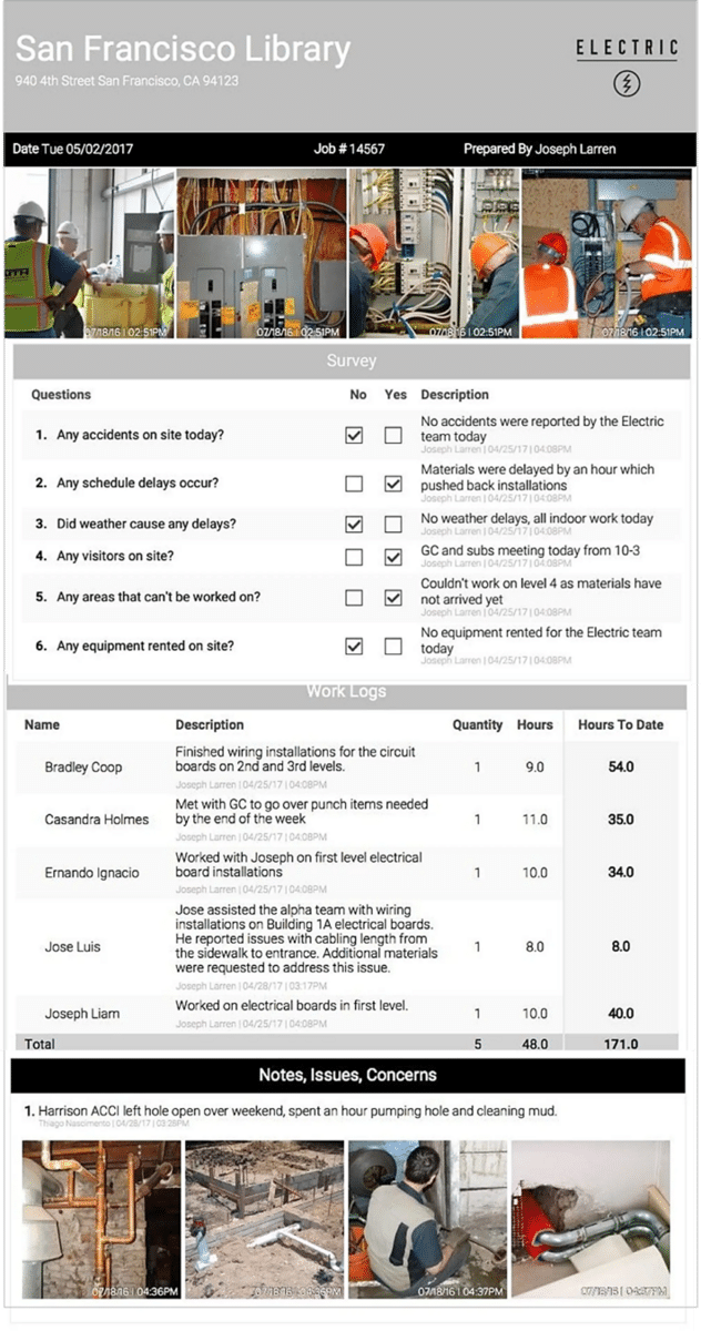 For example, here’s how a report looks like in Raken, a construction daily report app and software.