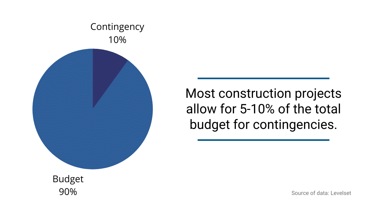 In most online resources, you’ll find that most construction projects allow for 5-10% of the total budget for contingencies.
