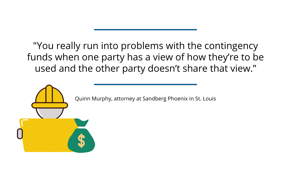 But the most important thing, according to Quinn Murphy, an attorney at Sandberg Phoenix, is to draft thorough contracts and discuss what the contingency funds will be used for.