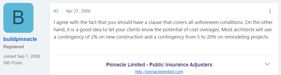 Yet, if you ask other contractors, they will have a different practice and view on what is considered a good contingency.