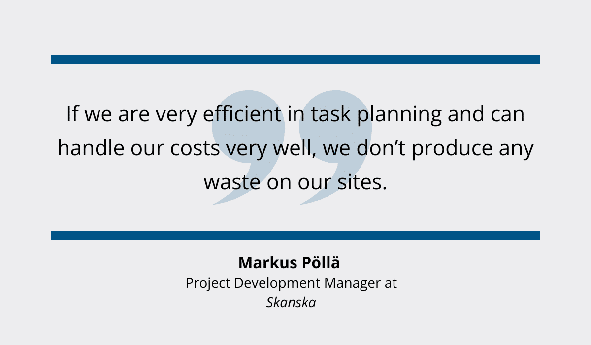 And, as Markus Pöllä, project development manager at multinational construction and development company Skanska, explains, it is precisely cost control that ensures they finish construction projects with zero waste.