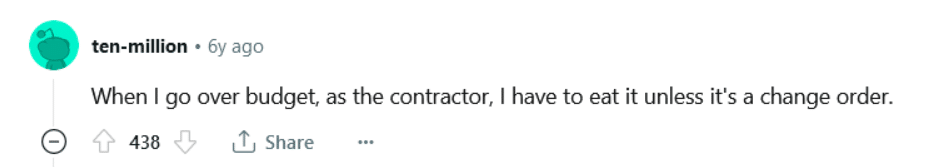 And then, it’s usually you as a contractor who has to cover budget overruns.