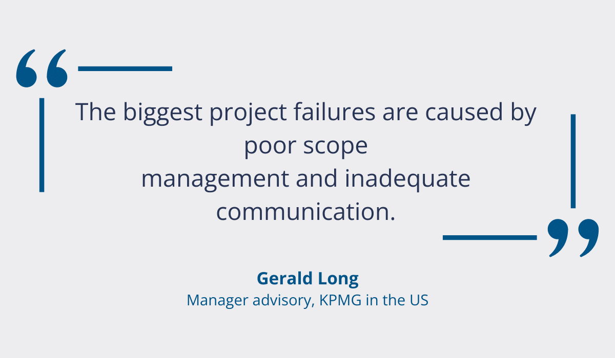 According to Gerald Long, Manager Advisory at KPMG in the US, poor scope management and inadequate communication are often to blame.