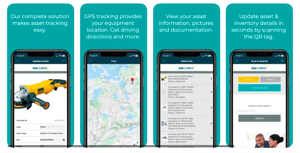 For instance, the GoCodes Asset Tracking asset management software enables workers to view and update asset information and quickly check equipment in and out whenever they need it, simply by using their phones or tablets.