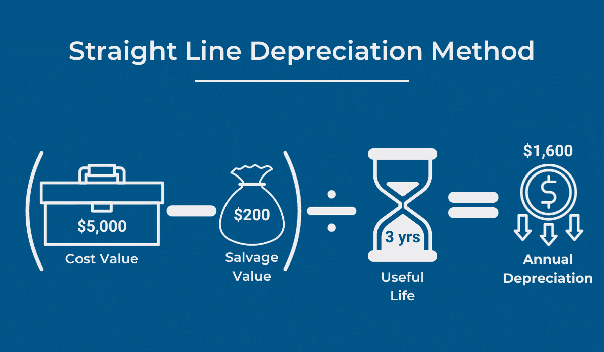 Straight-line depreciation is a method under which the same amount is going to be deducted from your equipment’s value every year.