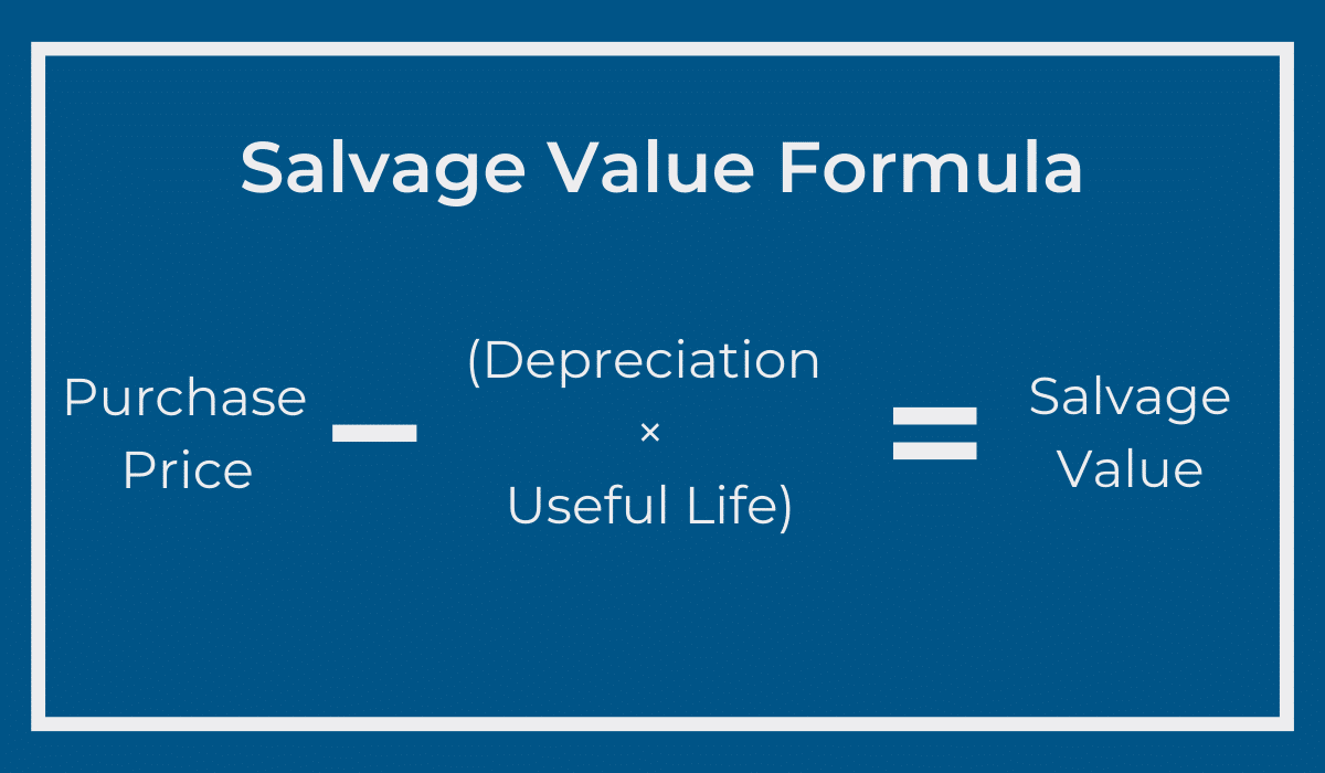 Salvage value, also known as residual value, represents the amount of money you could get for the piece of equipment at the end of its useful life—i.e., once it can no longer be used for its intended purpose.