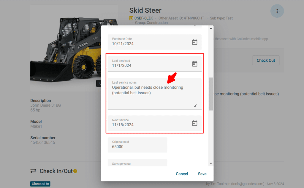 For example, the GoCodes Asset Tracking database also functions as a central maintenance log.