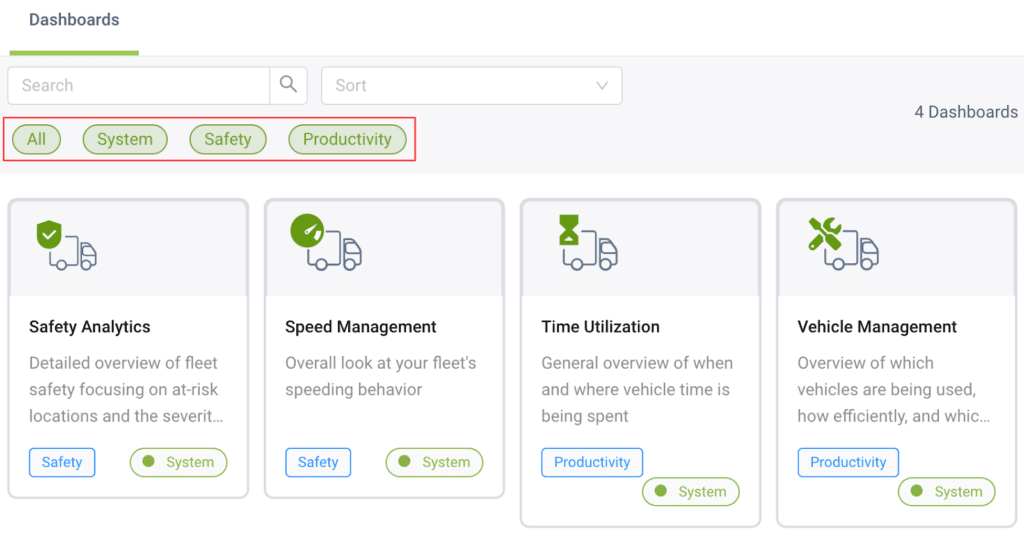 You also have telematics and geofencing custom reports that can help you map different trends related to safety, security, overall time utilization, and more.