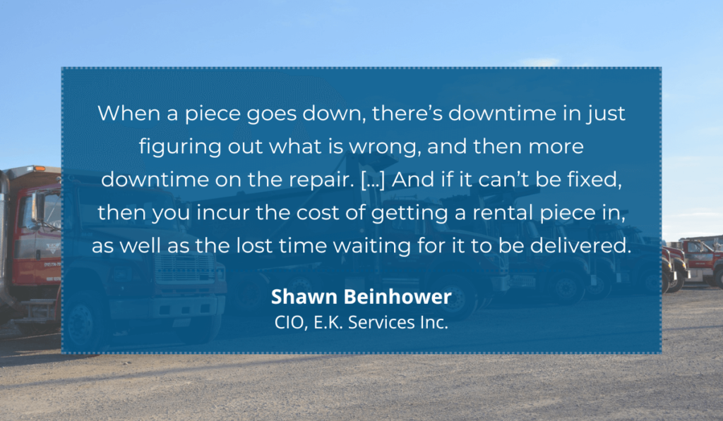Shawn Beinhower, CIO at E.K. Services Inc., illustrates just how disruptive, costly, and time-consuming equipment downtime can be:
