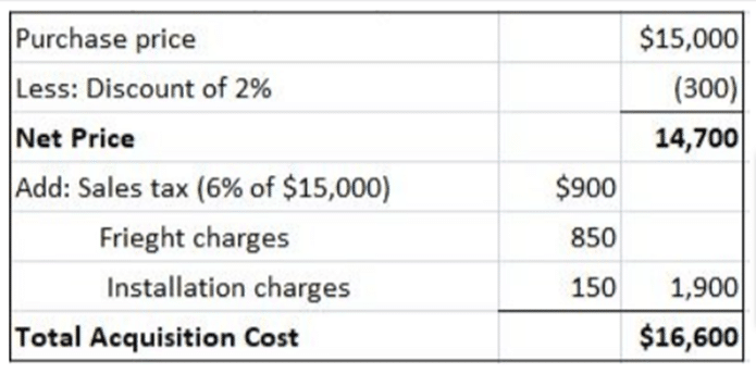 Here’s an example of the total acquisition cost for a $15,000 piece of equipment, courtesy of Finance Strategists: