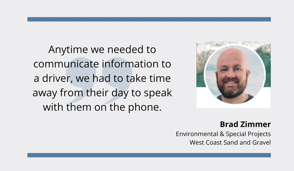 Brad Zimmer, manager at West Coast Sand and Gravel from our successful idle time reduction example, summed it up nicely: