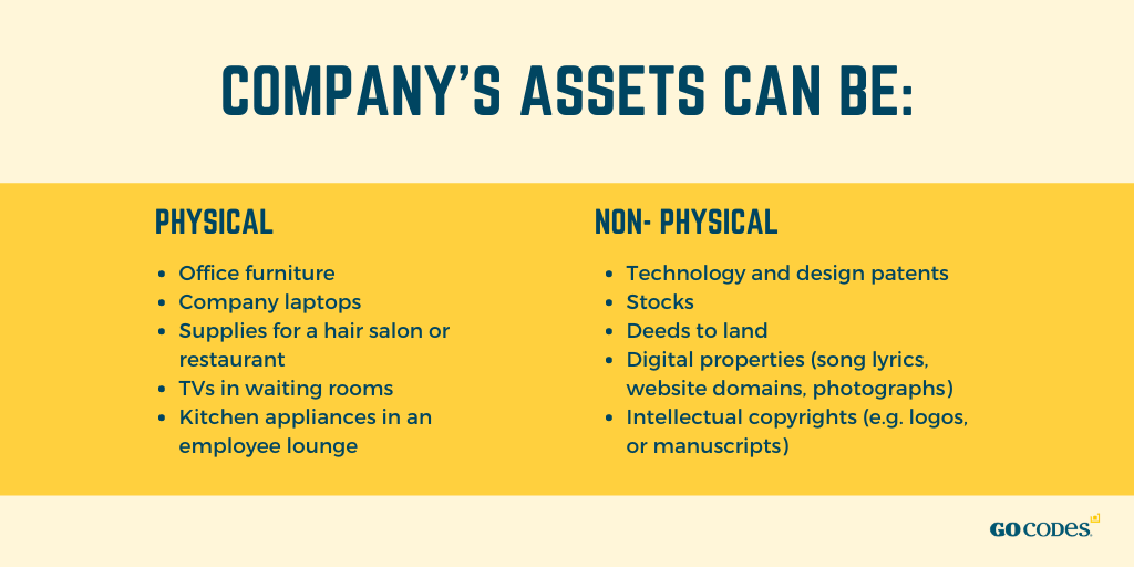 An asset is any item the company owns. This is a broad definition for a reason, because an “item” can be physical or non-physical.
