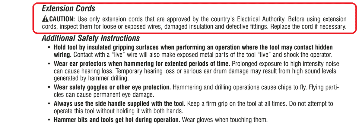 For example, here are a few words of caution on how to spot faulty electrical wiring from the instruction manual for a DeWalt drill.