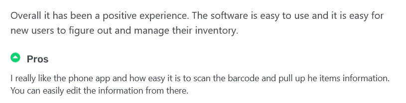 Here is one review from a satisfied customer who emphasizes how easy it is to use our inventory tracking.