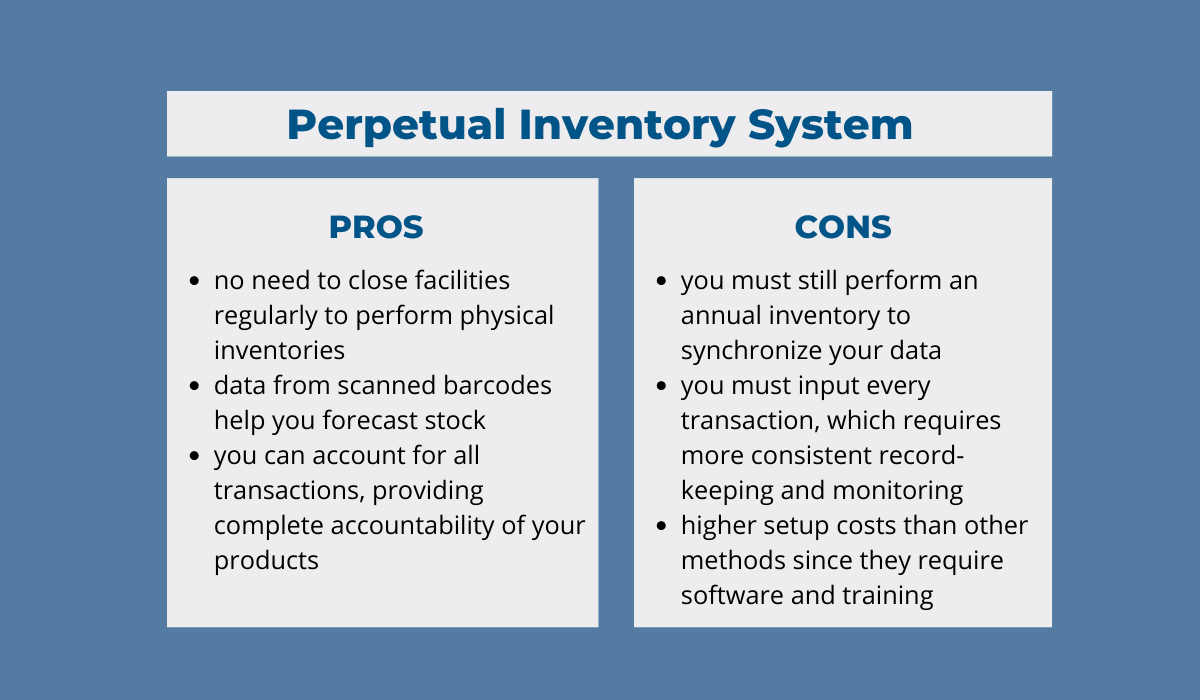 Moreover, this system might not capture discrepancies resulting from theft, loss, damage, and scanning errors, so you will still have to perform an annual physical inventory to synchronize the data.