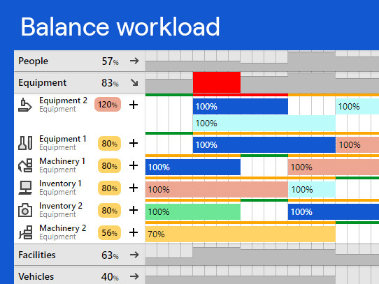 Furthermore, Ganttic helps optimize equipment usage by displaying utilization rates for equipment and showing which resources are available and who is working on what.