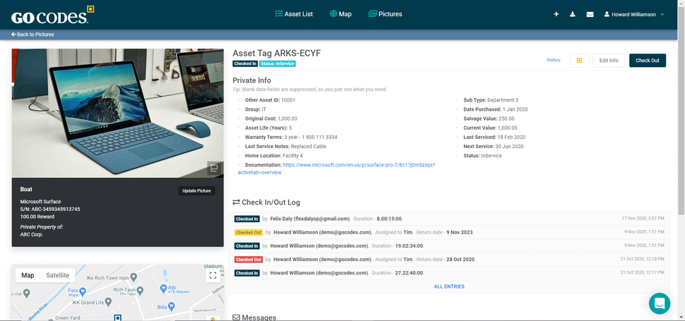 For instance, with GoCodes Asset Tracking, each asset you own gets its unique ID, together with a QR tag. You can scan a QR tag with any device and see information such as: