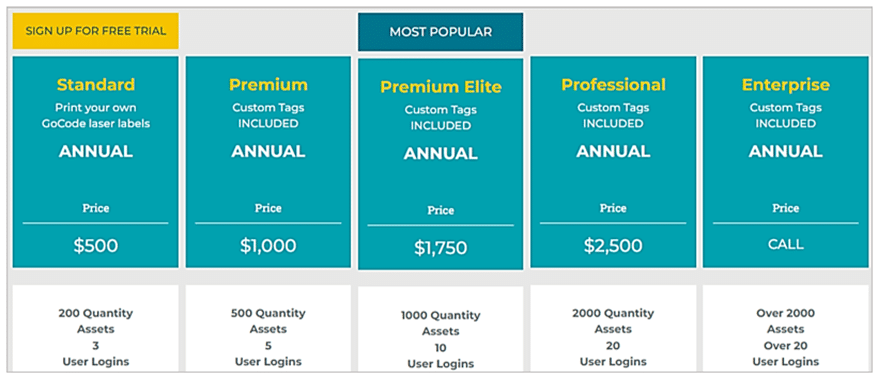 Finally, GoCodes Asset Tracking provides a 14-day free trial and transparent pricing.
