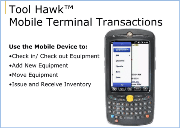When barcodes are used for tool tracking, Tool Hawk—instead of relying on in-app scanning—provides mobile handheld terminals with an integrated barcode scanner.