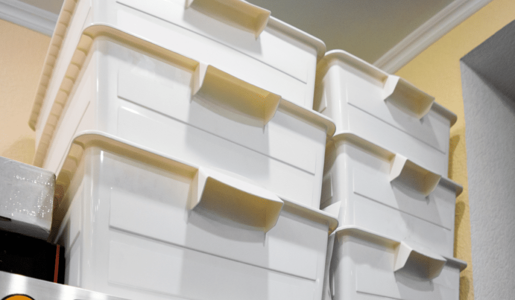Plastic bins are stackable and available in transparent form so that you can see at a glance what’s inside. That has great value from an organizational standpoint because tools become much easier to find.