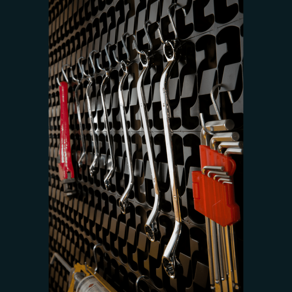 Most importantly, this power tool storage idea prevents your team from placing tools on the floor, even when setting them down momentarily between tasks.