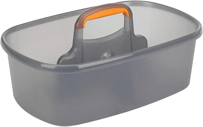 You should store your cleaning supplies in separate containers or caddies like this one. This will prevent any spillage, and the caddies are easily transportable.