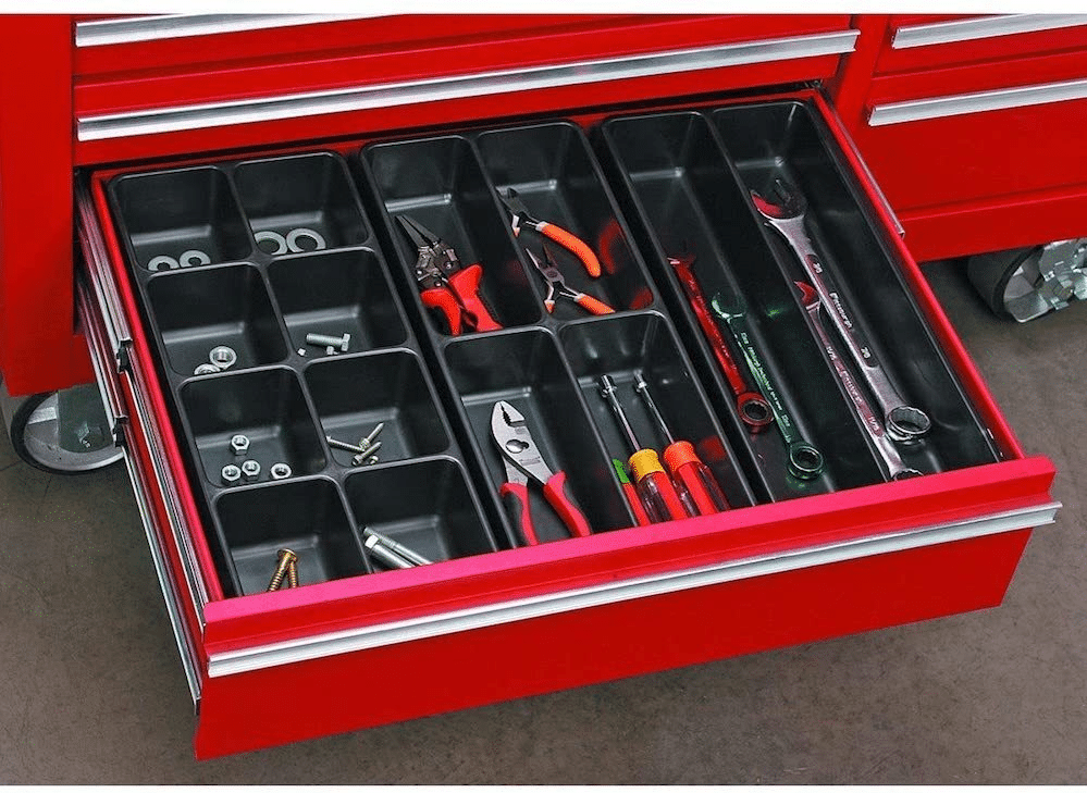 How you organize your drawers depends on your needs and preferences. You might want to keep the most used tools in top drawers to avoid bending over frequently.