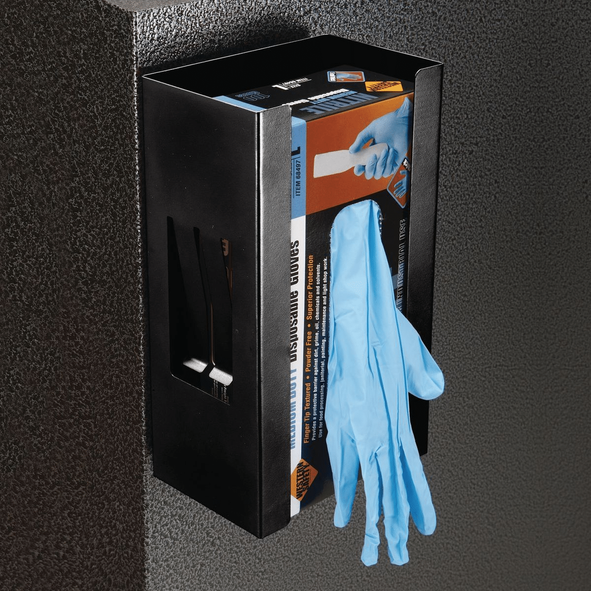 A great companion to any toolbox is a magnetic dispenser. You can attach them to any metal surface to hold gloves, paper towels, or tissues.