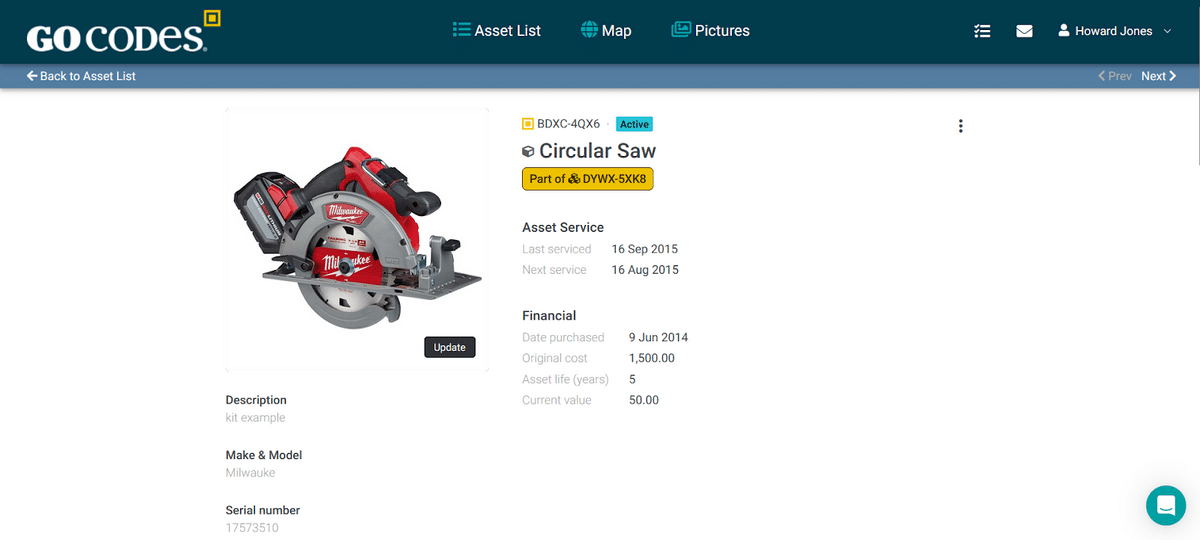 For instance, the tool kitting feature provided by GoCodes Asset Tracking treats each kit like an individual asset.